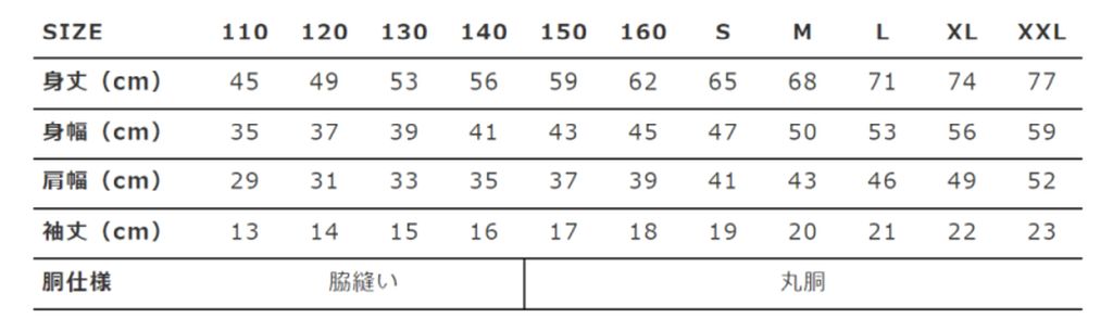 素材:綿100% 5.6oz(オンス) カラー:28色展開 サイズ:110~XXL(3L)