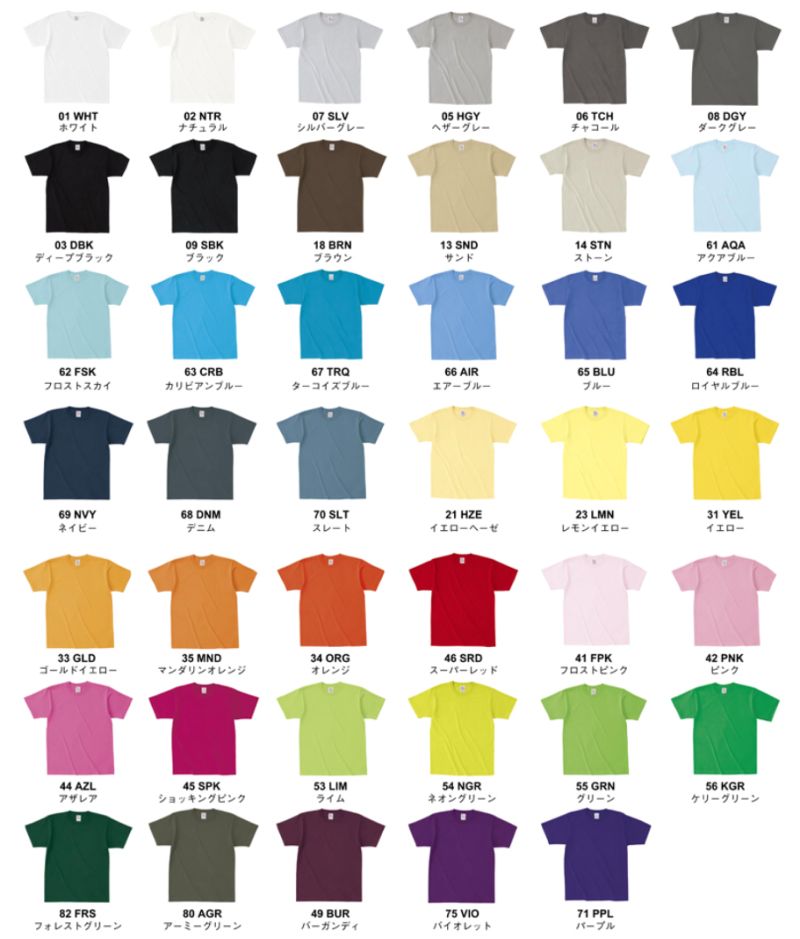 素材:綿100% 6.2oz(オンス) カラー:41色展開 サイズ:90~5XL(6L)