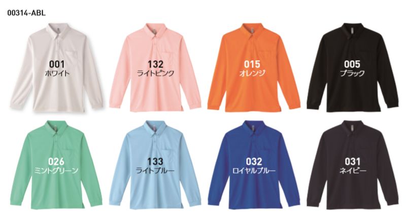 素材:本体 ポリ100% 4.4oz(オンス) カラー:20色展開 サイズ:SS~5L ボタン:シャツと同色
